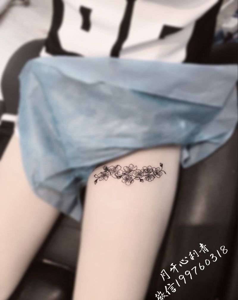 当前位置: 首页 >四川省成都市纹身店-月牙心刺青纹身图案>花纹身图片_成品腿部清新植物花纹身图案