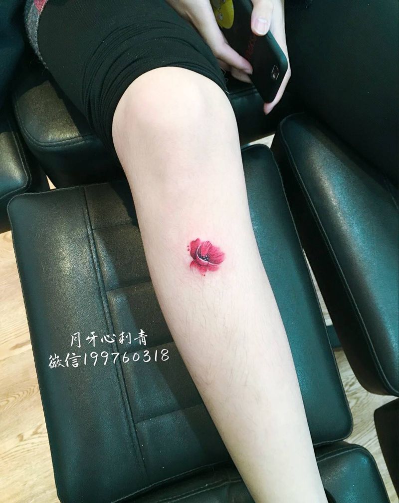 疤痕遮盖纹身图片_成品腿部清新植物罂粟疤痕遮盖纹身图案