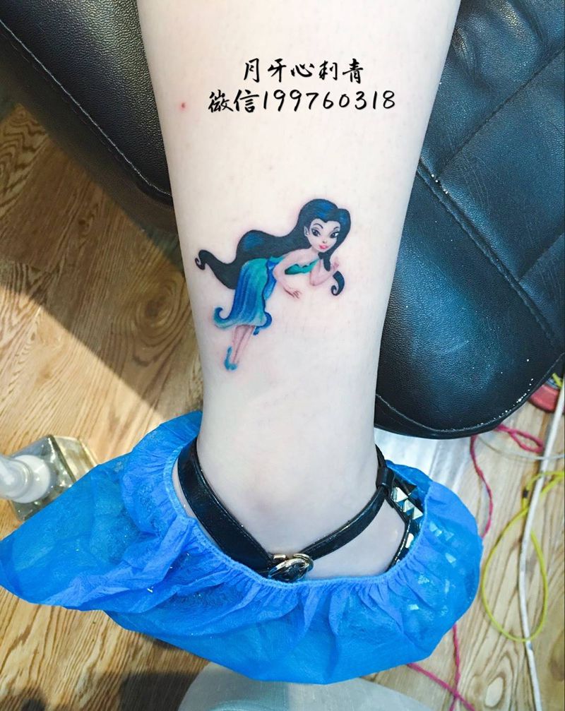 卡通公主纹身图片_成品腿部脚部欧美清新人物卡通公主纹身图案