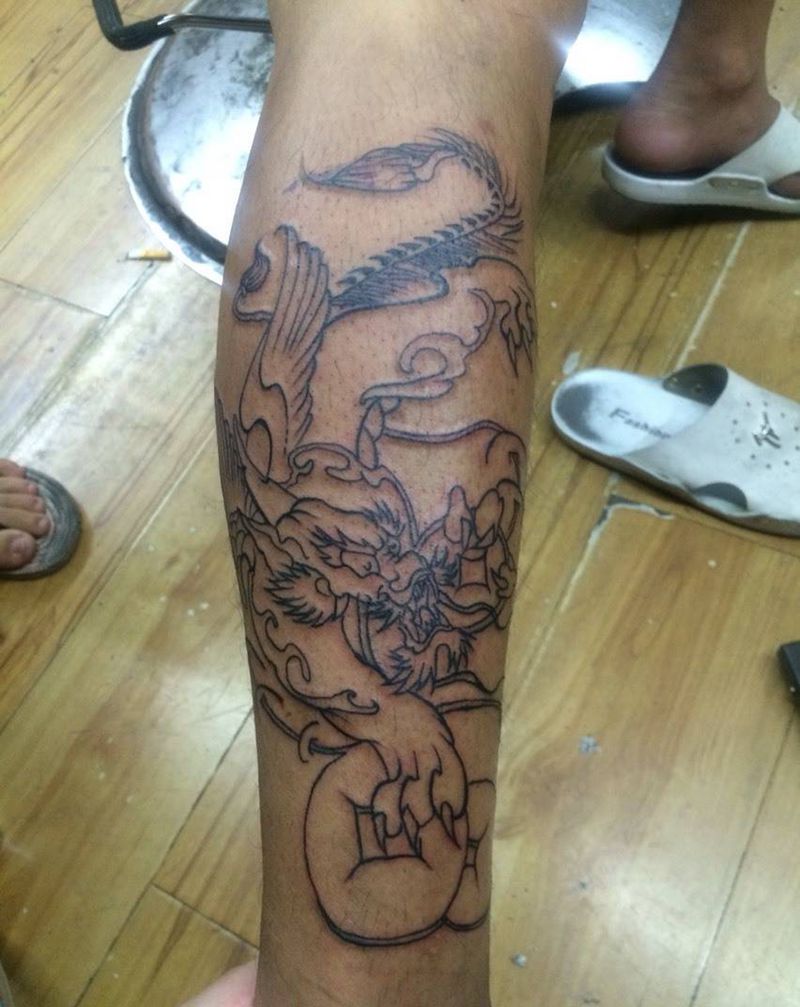 • T网红王老大花腿龙纹身图片_腿部新传统纹身图案
