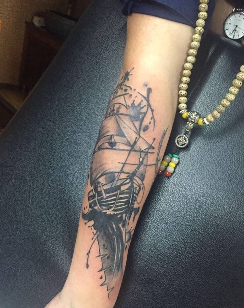 当前位置: 首页 >四川省成都市纹身店-老艺人纹身纹身图案>水墨帆船纹身图片