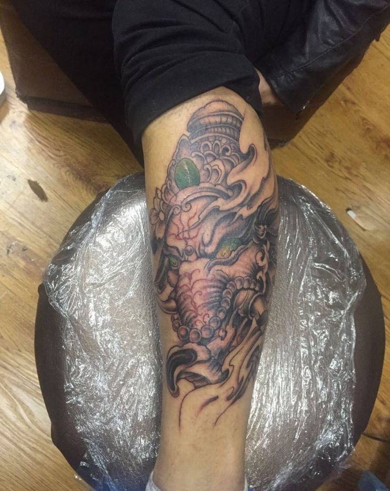当前位置: 首页 >四川省成都市纹身店-老艺人纹身纹身图案>象神纹身图片_腿部手臂传统鬼神动物纹身图案