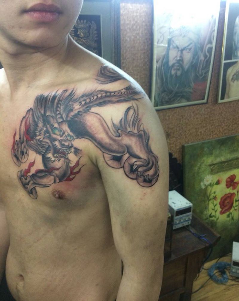 当前位置: 首页 >四川省成都市纹身店-老艺人纹身纹身图案>貔貅纹身图片_胸部肩部动物传统成品纹身图案