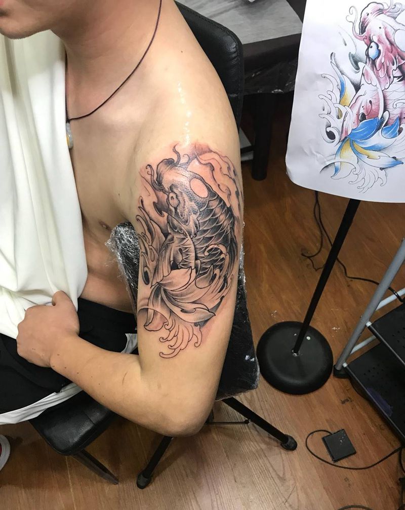 当前位置: 首页 >四川省成都市纹身店-老艺人纹身纹身图案>招财锦鲤纹身图片