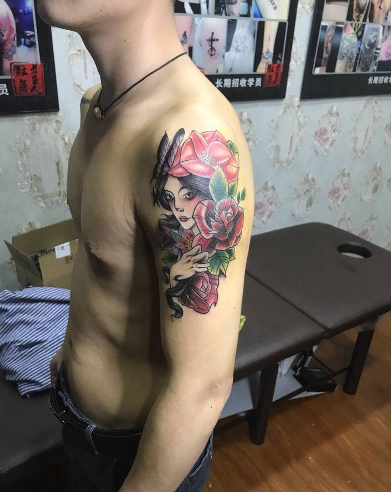 • 女性大花胸纹身_43张霸气漂亮的女性大花胸纹身图案作品