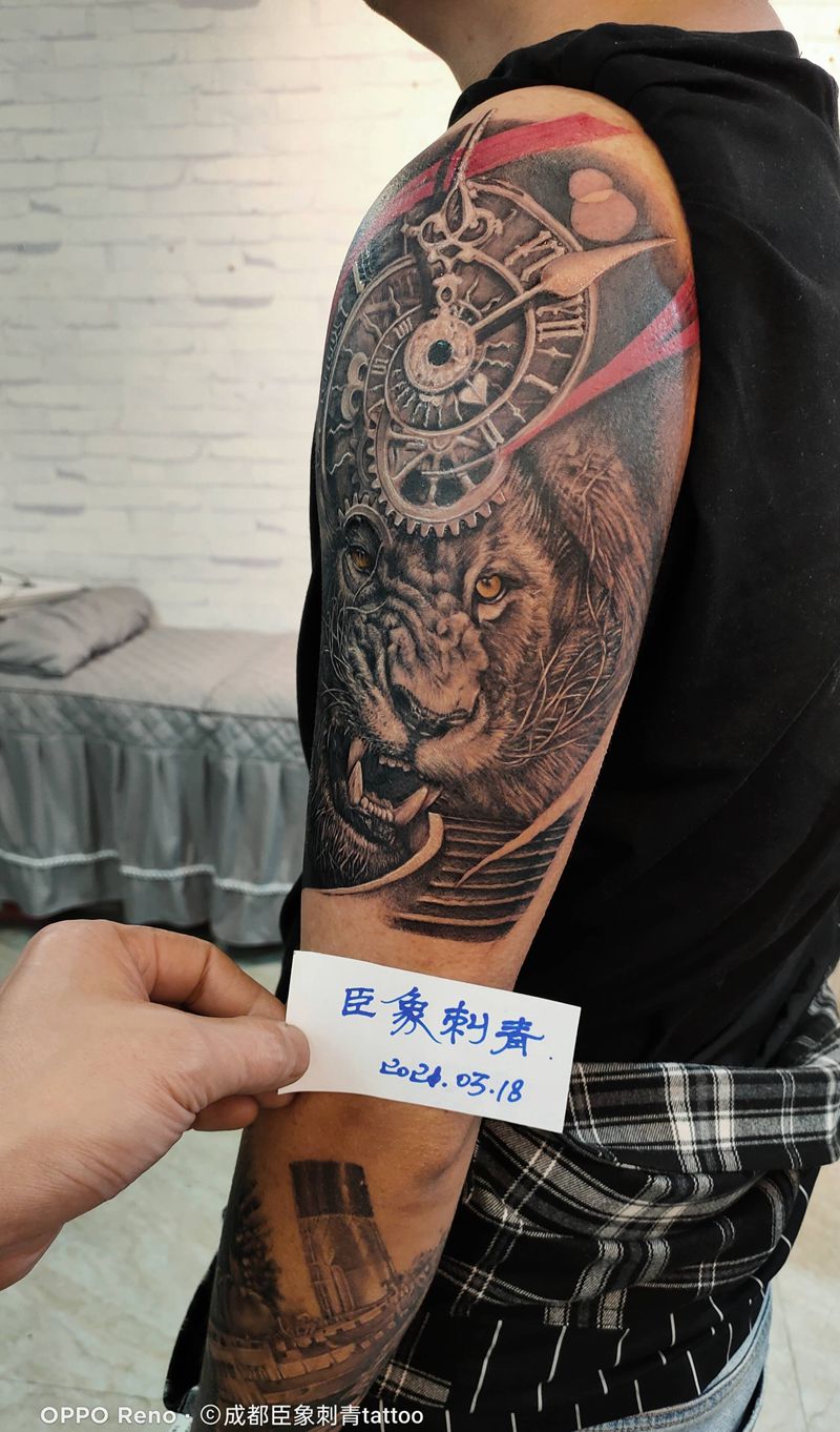 当前位置: 首页 >四川省成都市纹身店-成都臣象刺青纹身图案>威严纹身图片_手臂欧美写实狮子,楼梯纹身图案