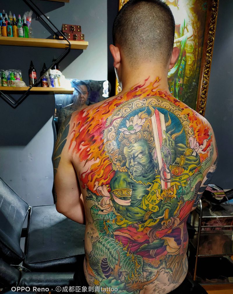 当前位置: 首页 >四川省成都市纹身店-成都臣象刺青纹身图案>不动明王纹身图片_背部新传统水彩纹身图案