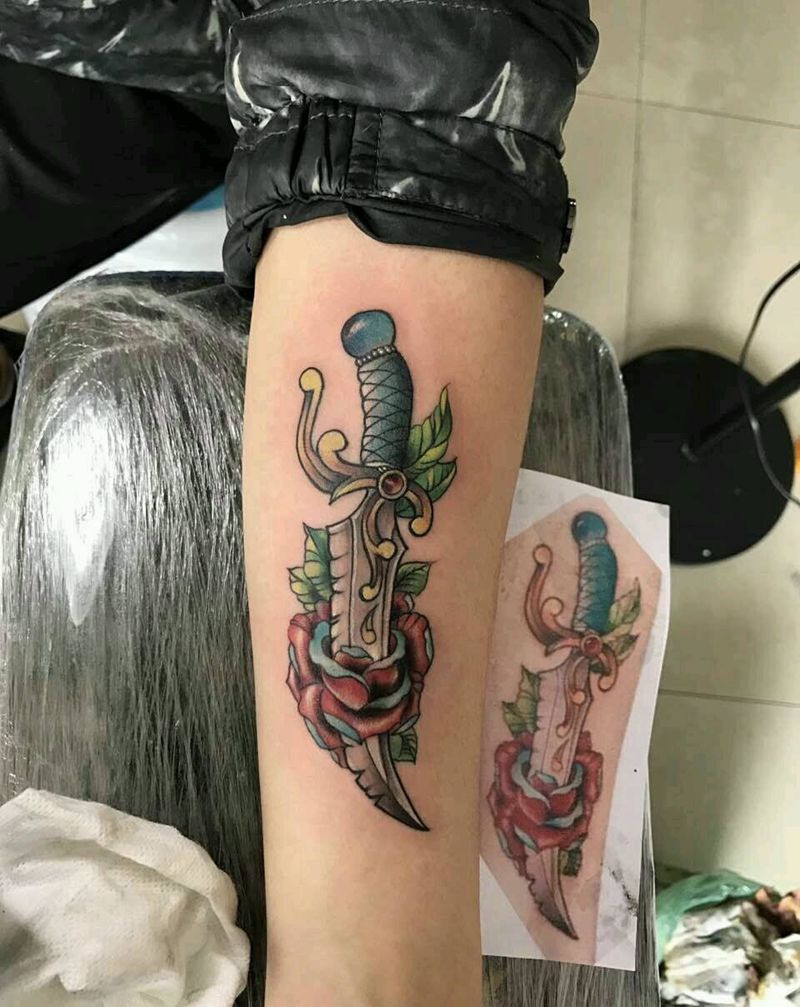 当前位置: 首页 >四川省成都市纹身店-成都臣象刺青纹身图案>匕首玫瑰纹身图片