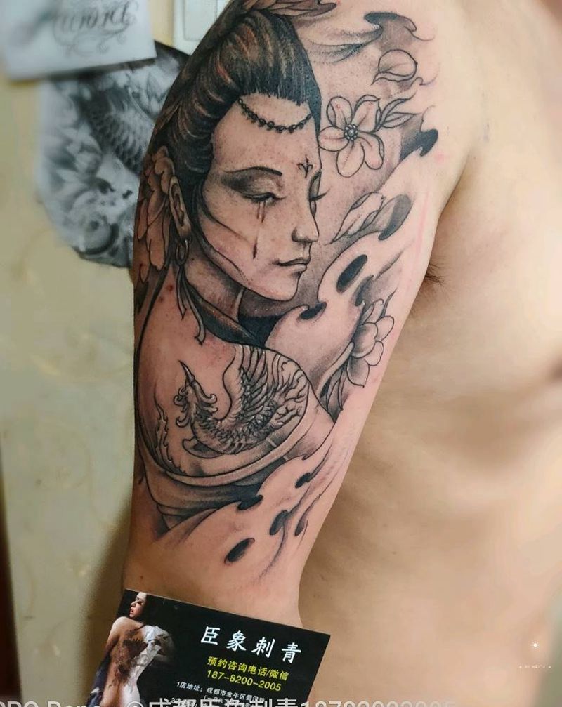 当前位置: 首页 >四川省成都市纹身店-成都臣象刺青纹身图案>艺妓纹身图片_新传统艺妓纹身图案
