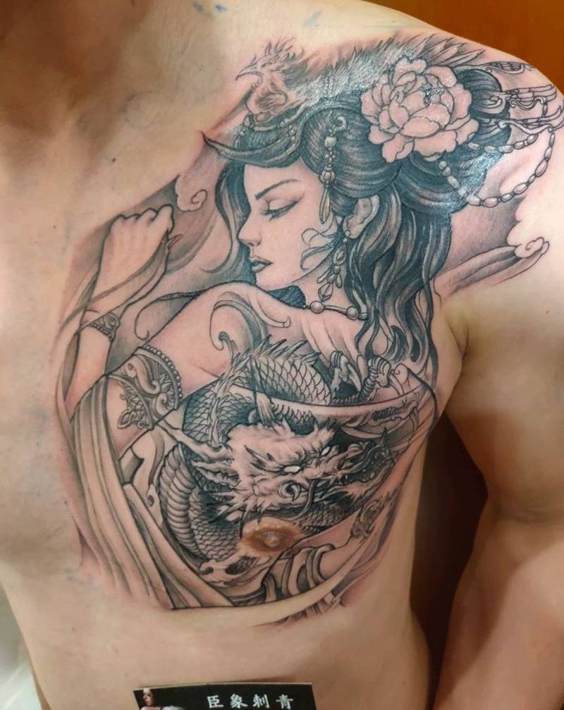 龙艺纹身图片_胸部新传统艺妓,龙纹身图案