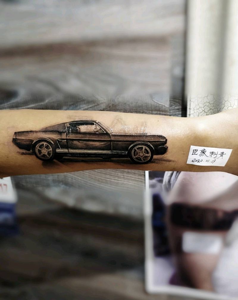 遮盖纹身图片_手臂欧美写实车纹身图案