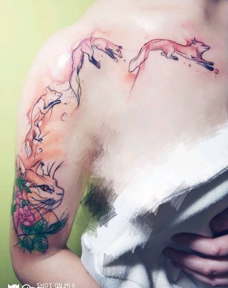 水彩纹身图片_手臂胸部水彩纹身图案