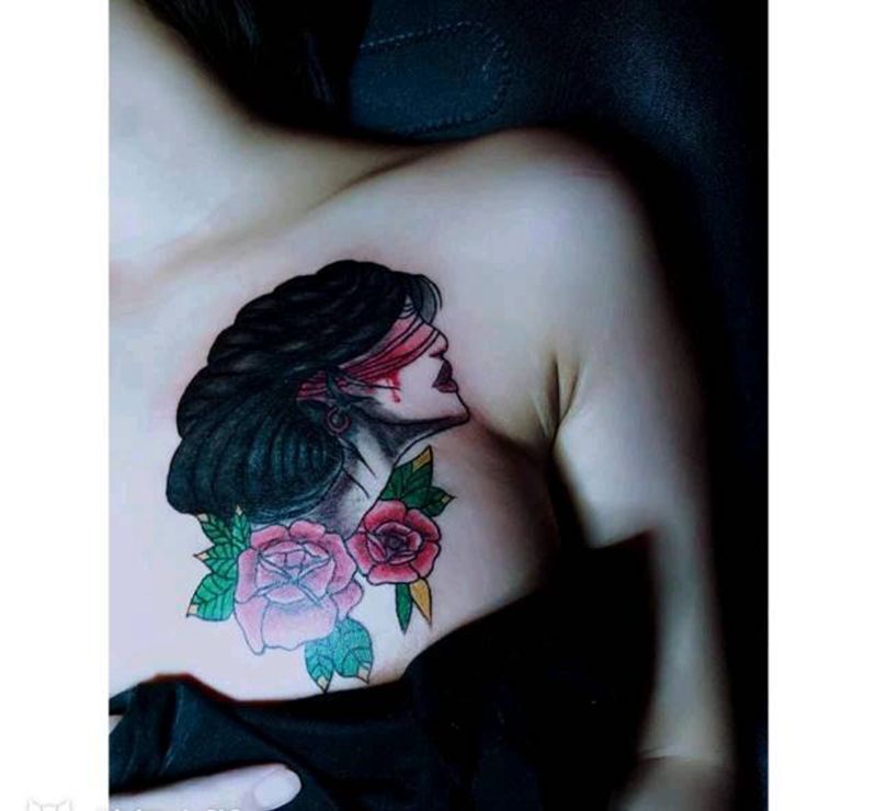 • 女性大花胸纹身_43张霸气漂亮的女性大花胸纹身图案作品