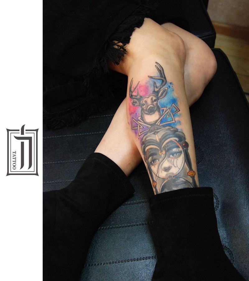 当前位置: 首页 >四川省成都市纹身店-力刺青纹身图案>鹿纹身图片_腿部水彩纹身图案