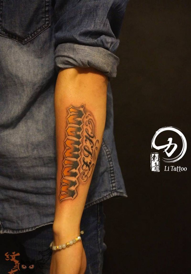 当前位置: 首页 >四川省成都市纹身店-力刺青纹身图案>手臂花体英文纹身图片