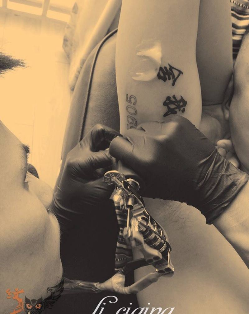 当前位置: 首页 >四川省成都市纹身店-力刺青纹身图案>帅气兵哥哥手臂内侧纹身纹身图片