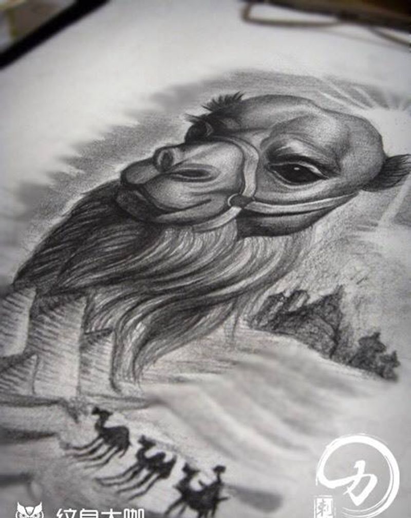 当前位置: 首页 >四川省成都市纹身店-力刺青纹身图案>沙漠绿洲(骆驼)纹身图片