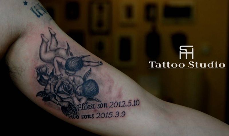 • T家庭图,一家四口生日纪念!纹身图片_手臂纹身图案