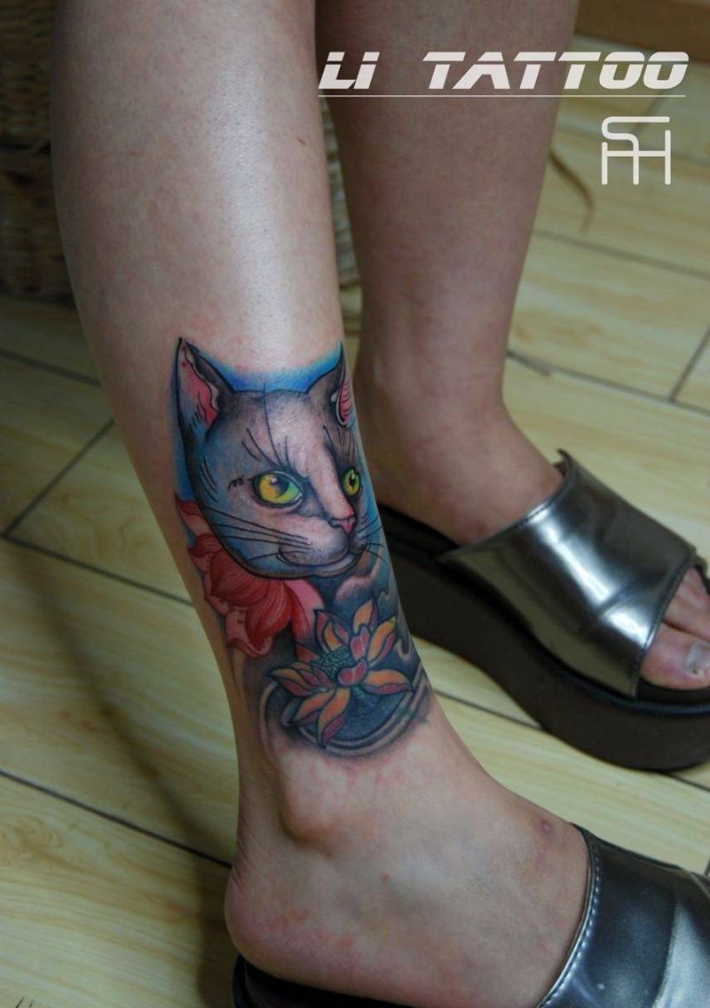 • T网红王老大花腿龙纹身图片_腿部新传统纹身图案