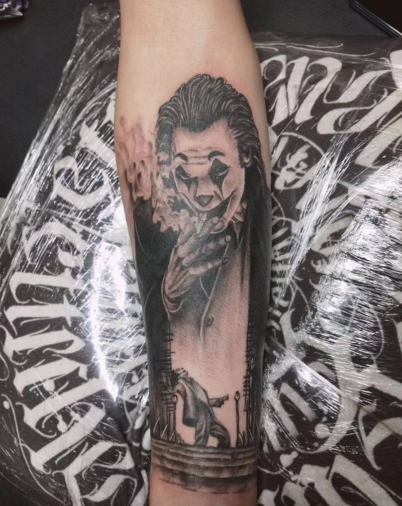 小丑纹身图片_手部手臂水彩欧美写实纹身图案