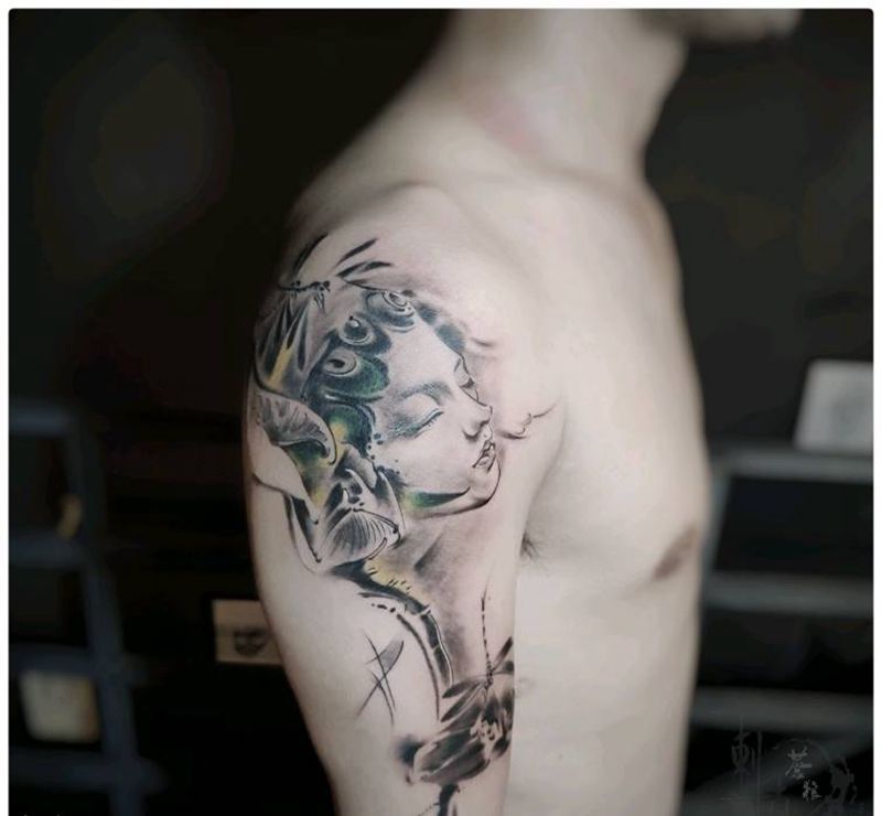 • 纹身吧推荐的披肩图腾半胛纹身图案作品展示