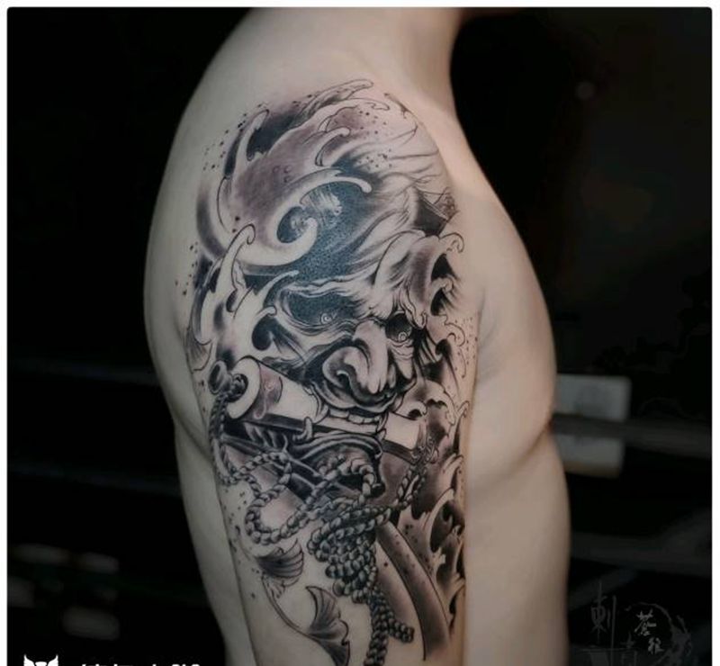 黑灰满背纹身图案