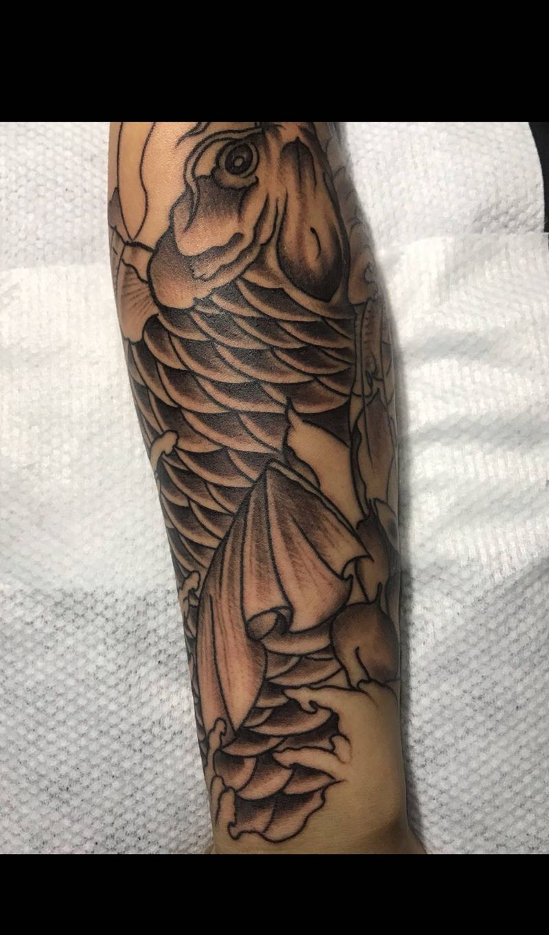 当前位置: 首页 >四川省成都市纹身店-历炼刺青纹身图案>小臂鲤鱼纹身图片
