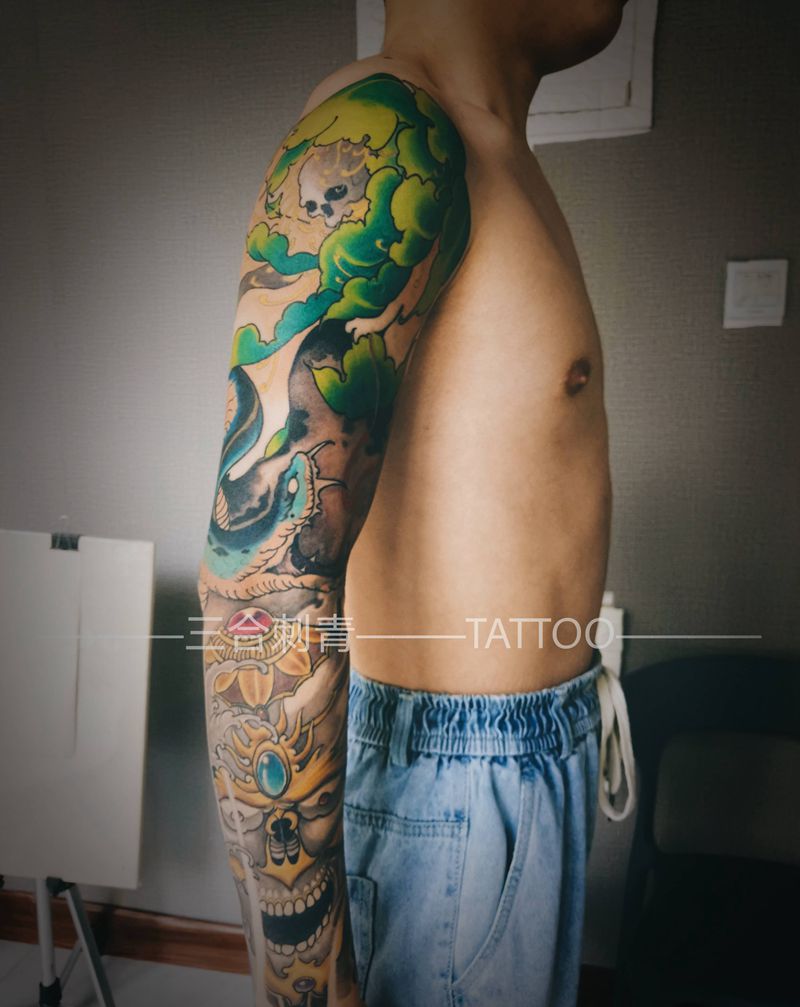 当前位置: 首页 >四川省成都市纹身店-三合刺青纹身图案>传统花臂纹身图片_手臂新传统纹身图案