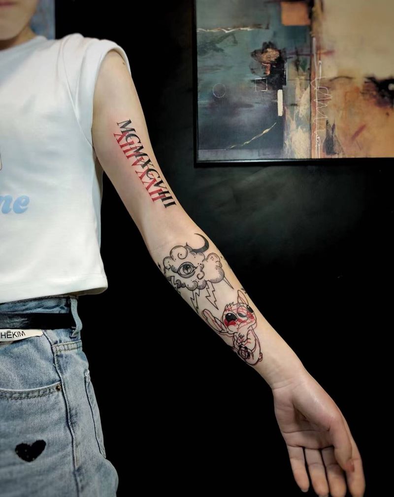 • T家庭图,一家四口生日纪念!纹身图片_手臂纹身图案
