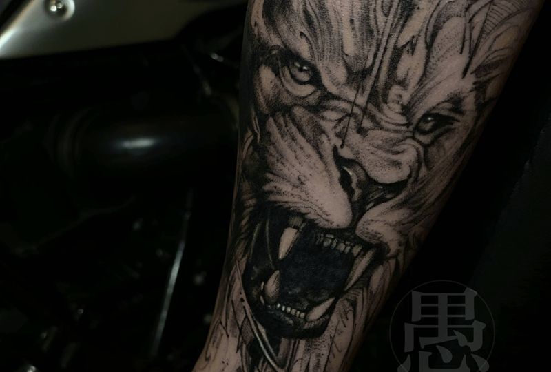 当前位置: 首页 >四川省成都市纹身店-Aeon.ink恒.刺青纹身图案>狮子纹身图片_手臂点刺狮子纹身图案