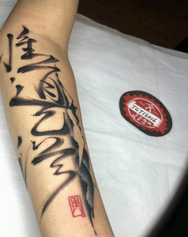 惟道是从纹身图片_手部水墨原创纹身图案