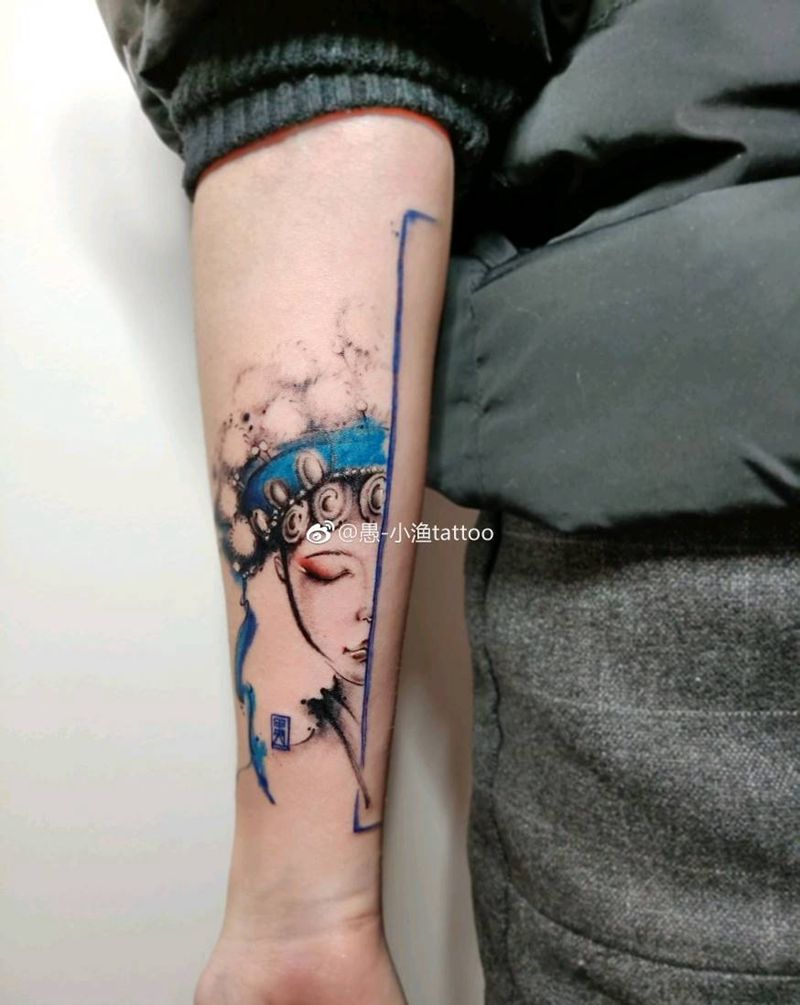 当前位置: 首页 >四川省成都市纹身店-Aeon.ink恒.刺青纹身图案>花旦纹身图片_手臂水墨原创纹身图案