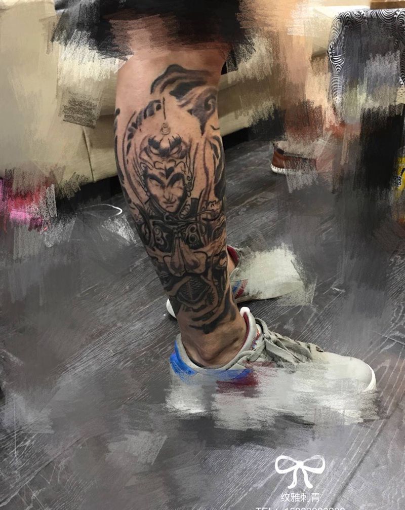 • T网红王老大花腿龙纹身图片_腿部新传统纹身图案
