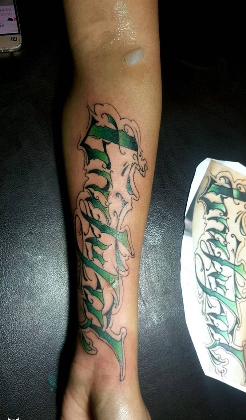 当前位置: 首页 >四川省成都市纹身店-蚂蚁刺青纹身图案>花体英文纹身图片_手臂清新字符奇卡诺英文成品手稿纹身图案