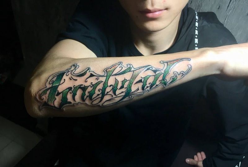 当前位置: 首页 >四川省成都市纹身店-蚂蚁刺青纹身图案>奇卡诺花体英文纹身图片_成品手稿手臂手部欧美字符原创花臂纹身图案