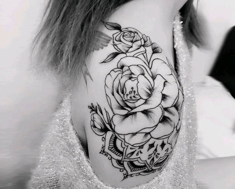 肩花纹身图片_肩部素花纹身图案