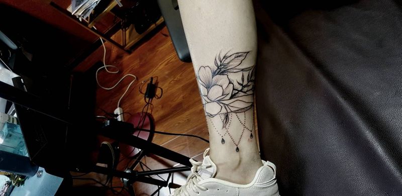 原创脚环纹身图片_脚部腿部点刺几何原创脚环纹身图案
