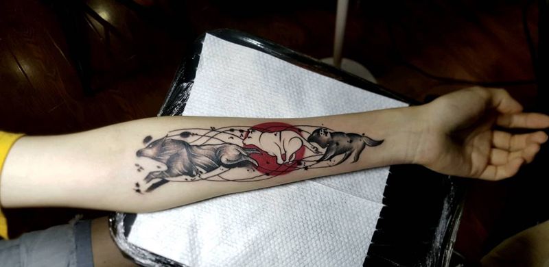当前位置: 首页 >四川省成都市纹身店-蚂蚁刺青纹身图案>三匹狼纹身图片_手臂手部几何水墨狼黑灰小清新纹身图案