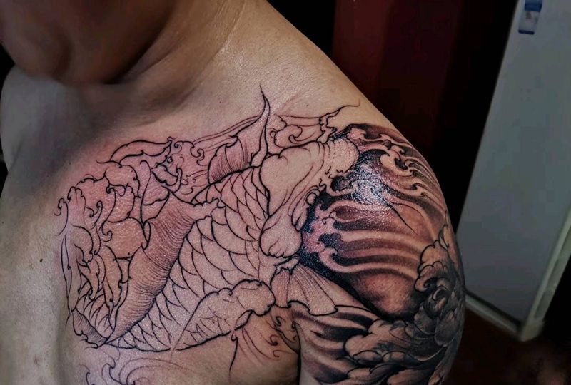 • 纹身吧推荐的披肩图腾半胛纹身图案作品展示