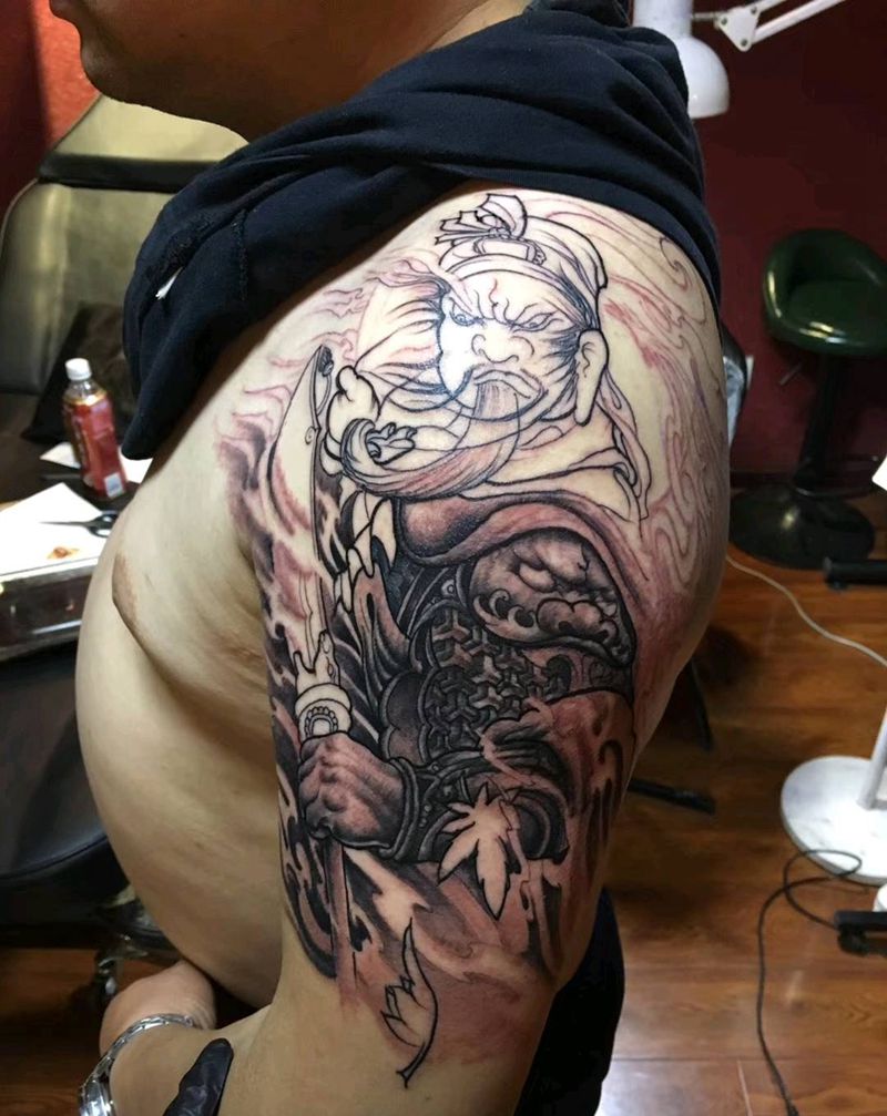 当前位置: 首页 >四川省成都市纹身店-蚂蚁刺青纹身图案>关公纹身图片_肩部手臂新传统纹身图案