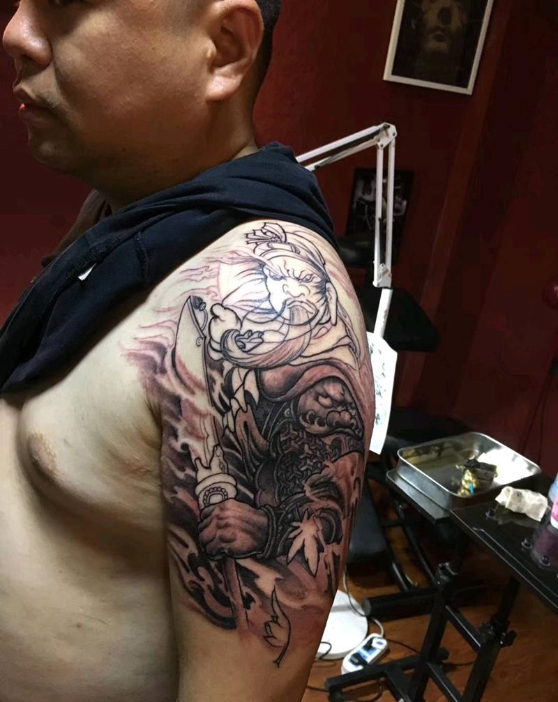 当前位置: 首页 >四川省成都市纹身店-蚂蚁刺青纹身图案>关公纹身图片_肩部手臂新传统纹身图案