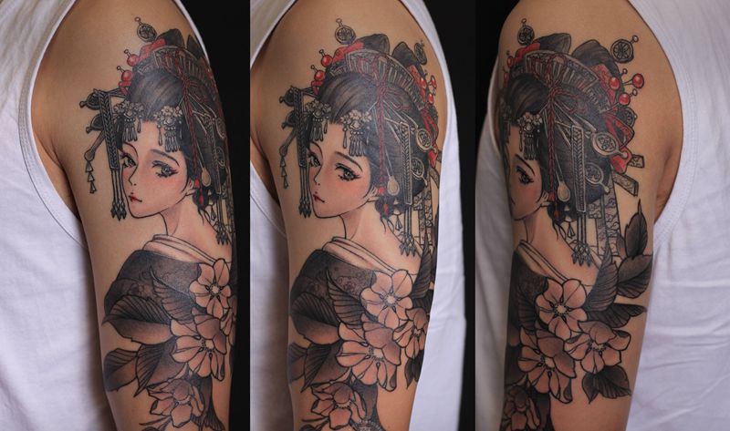 当前位置: 首页 >四川省自贡市纹身店-自贡南录刺青纹身图案>恬静纹身图片_手臂新传统艺妓南录刺青纹身图案