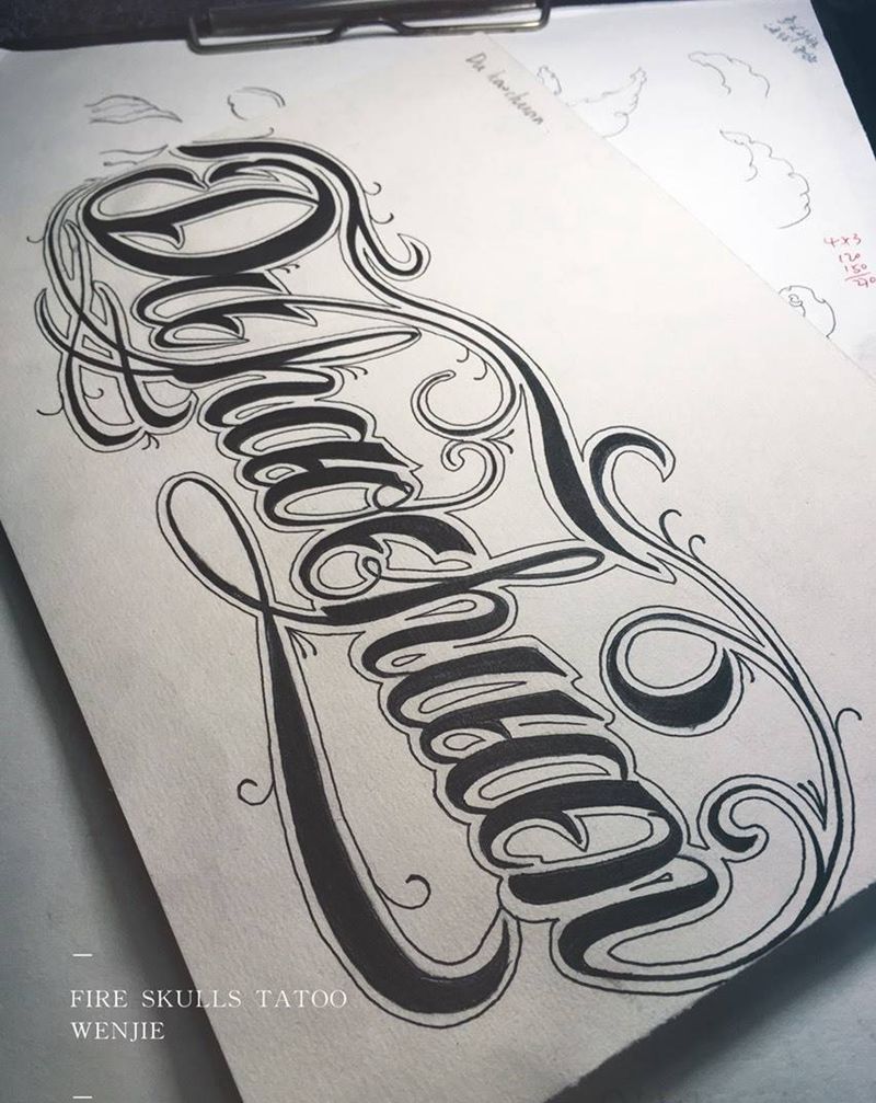 当前位置: 首页 >四川省自贡市纹身店-自贡南录刺青纹身图案>原创花体字纹身图片_成品手稿原创字符欧美荧光纹身图案