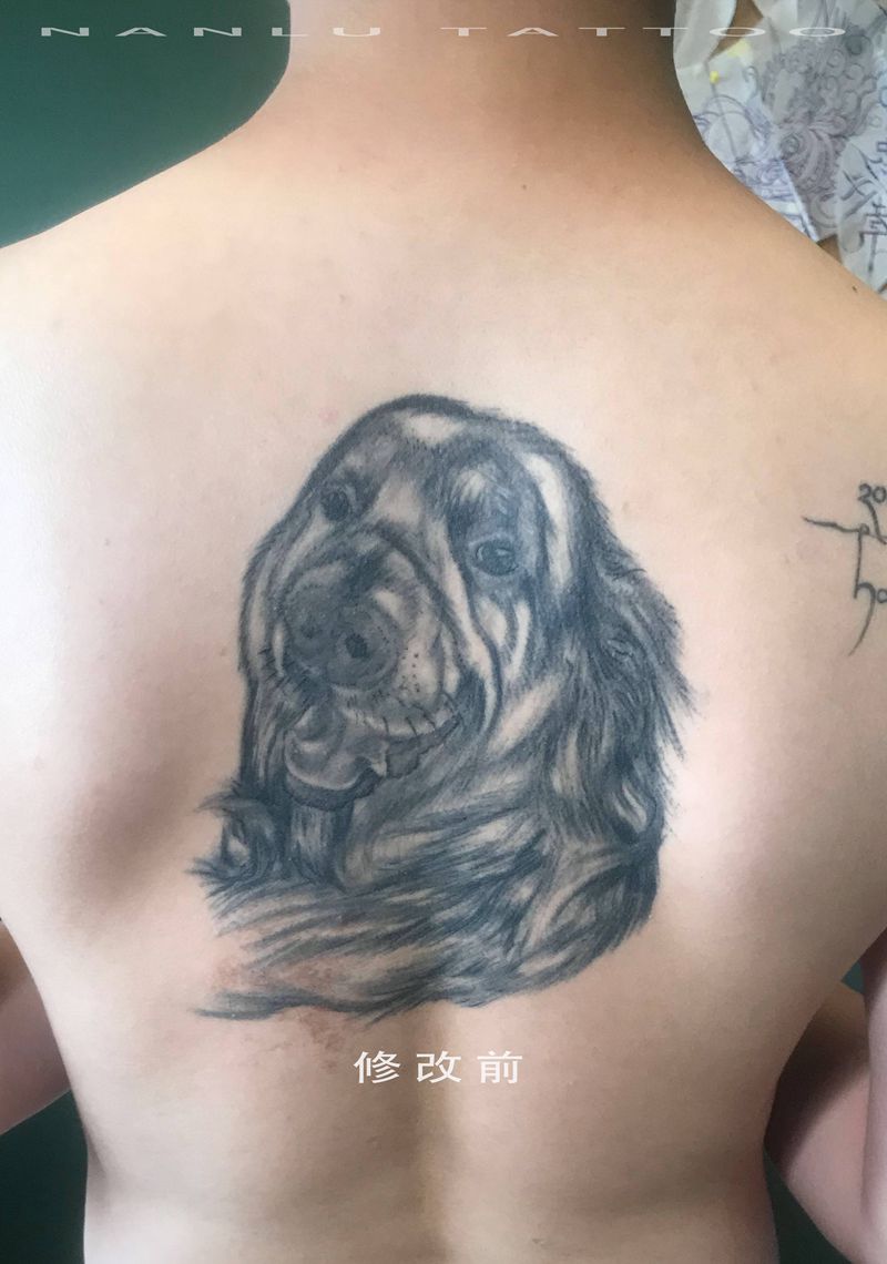 老旧纹身修改纹身图片_背部修改狗狗纹身图案
