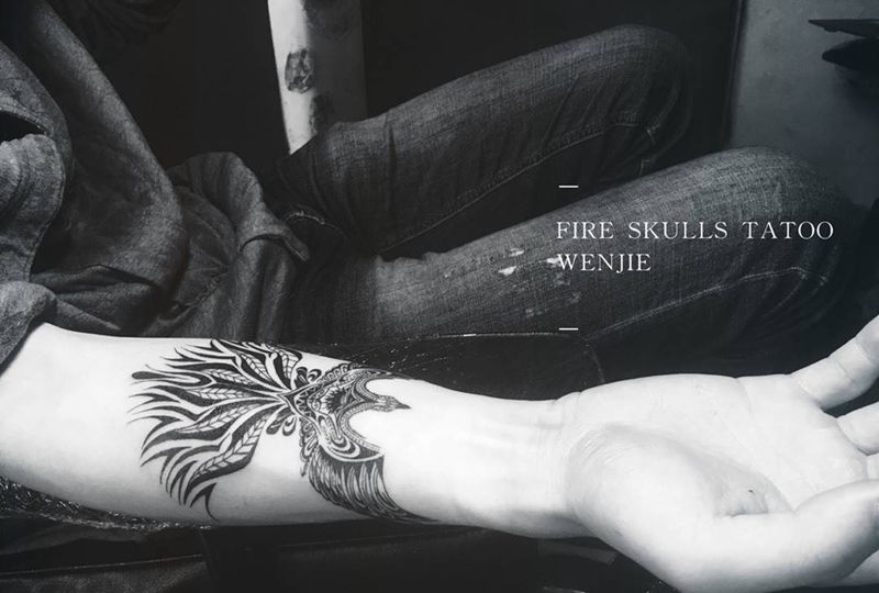 当前位置: 首页 >四川省自贡市纹身店-自贡南录刺青纹身图案>不死鸟纹身图片_成品手稿手臂图腾纹身图案