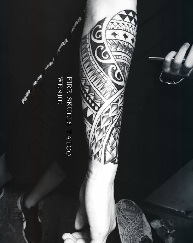 当前位置: 首页 >四川省自贡市纹身店-自贡南录刺青纹身图案>玛雅图腾包小臂纹身图片_成品手部欧美图腾原创纹身图案