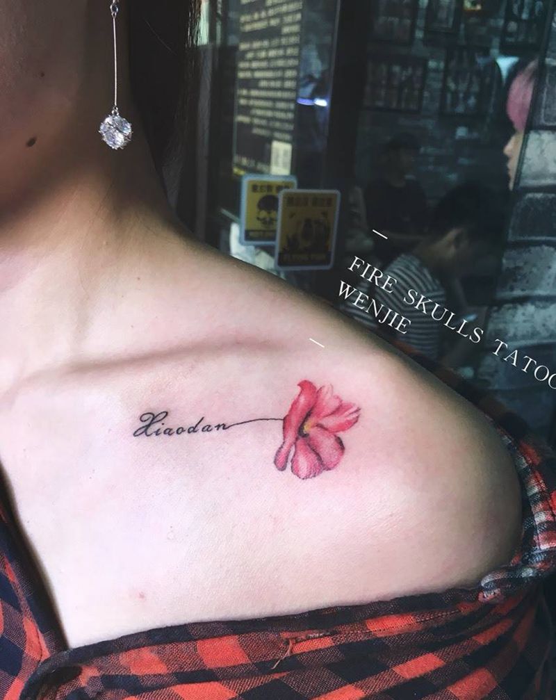 当前位置: 首页 >四川省自贡市纹身店-自贡南录刺青纹身图案>人美还是花美纹身图片_成品肩部腿部清新植物花纹身图案