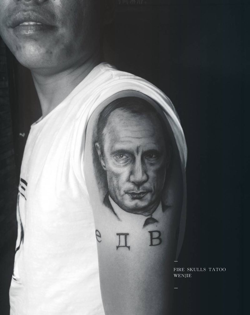 普京大帝纹身图片_成品手臂欧美肖像人物自贡火骷髅纹身图案