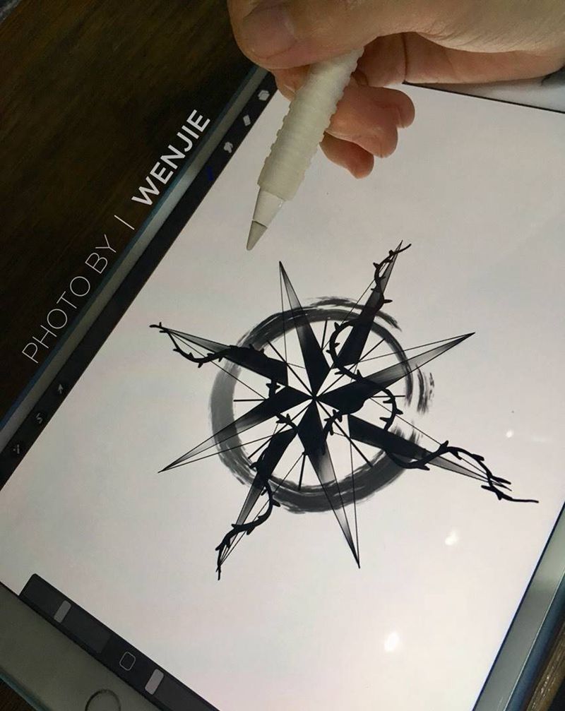 当前位置: 首页 >四川省自贡市纹身店-自贡南录刺青纹身图案>指南针纹身图片_手稿手臂国画原创火骷髅纹身图案