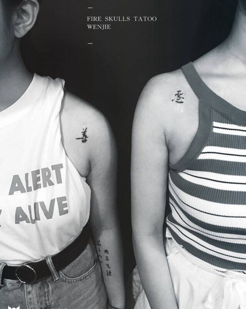 当前位置: 首页 >四川省自贡市纹身店-自贡南录刺青纹身图案>我们天生是一对纹身图片_成品手臂腿部手部脚部清新自贡火骷髅情侣纹身图案